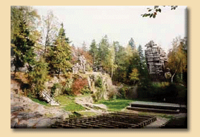 Das heutige Naturtheater entstand aus einem ehemaligen Steinbruch, dem 6 der vormals 13 Felsen zum Opfer fielen. Naturschützer sorgten jedoch dafür, dass der weitere Gesteinsabbau unterbunden und die verbliebenen Felsen im Jahre 1923 unter Schutz gestellt wurden. |